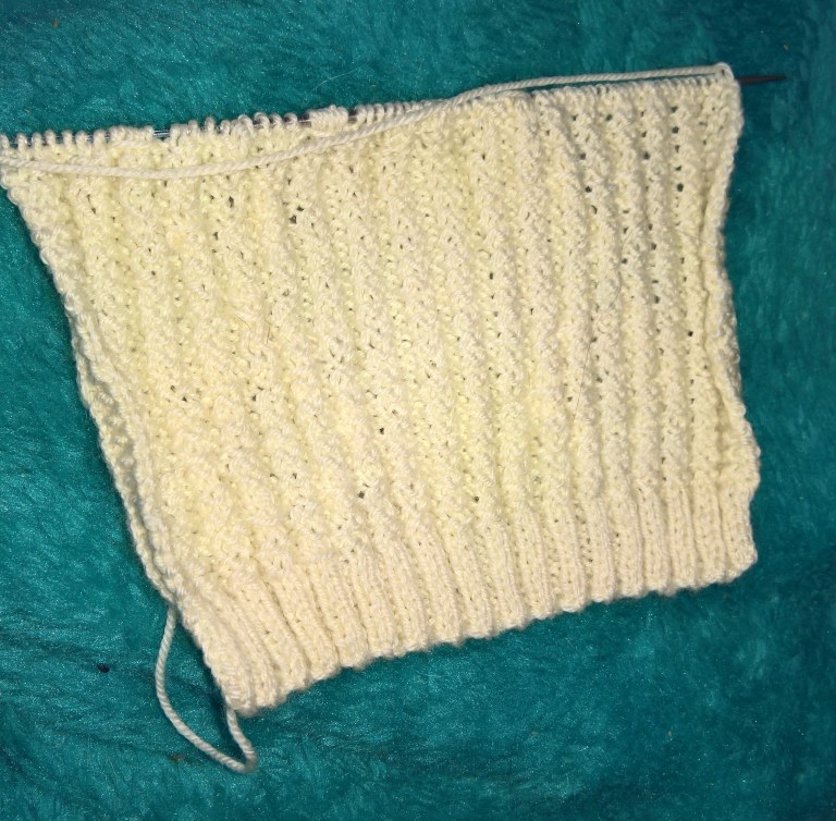 Meanwhile on the needles I have a mystery sock, which is my design for the Bleeping Sock Games on Ravelry. I have designed at least one sock for this annual sockfest every year and this year my chosen game was easy. Usually I have to scratch my head a bit, because I don’t play video games, never have, but thankfully hubby does so I get to see all the ones he is playing and choose from those. I can’t give which one it is away, but it really was a no brainer.