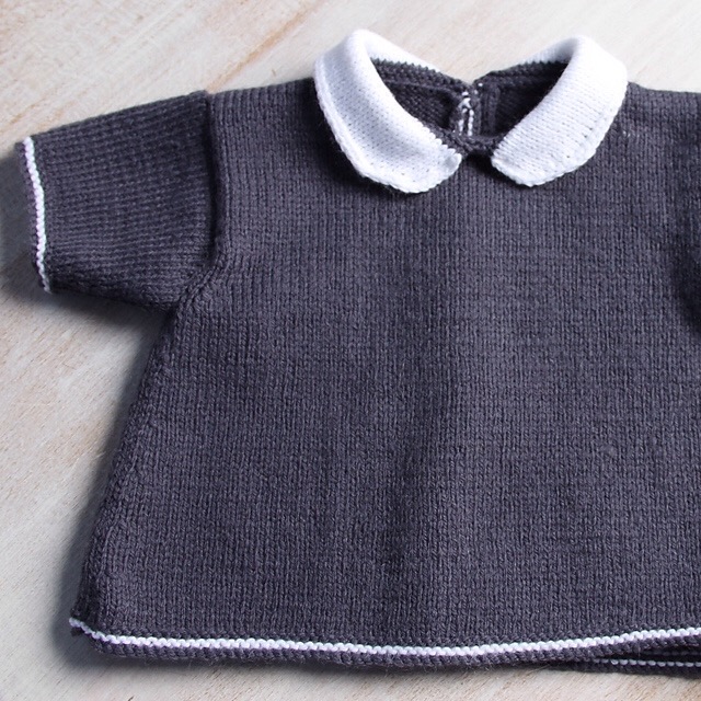 I am sure Florence won’t mind me borrowing her pictures, the link below them will take you to the pattern purchase page. I have made several of her classic little French baby patterns, this time, rather than the navy blue and white above, I am using mid grey with pale pink trim and collar. The Yarn is Debbie Bliss Baby Cashmerino and is so yummy!
