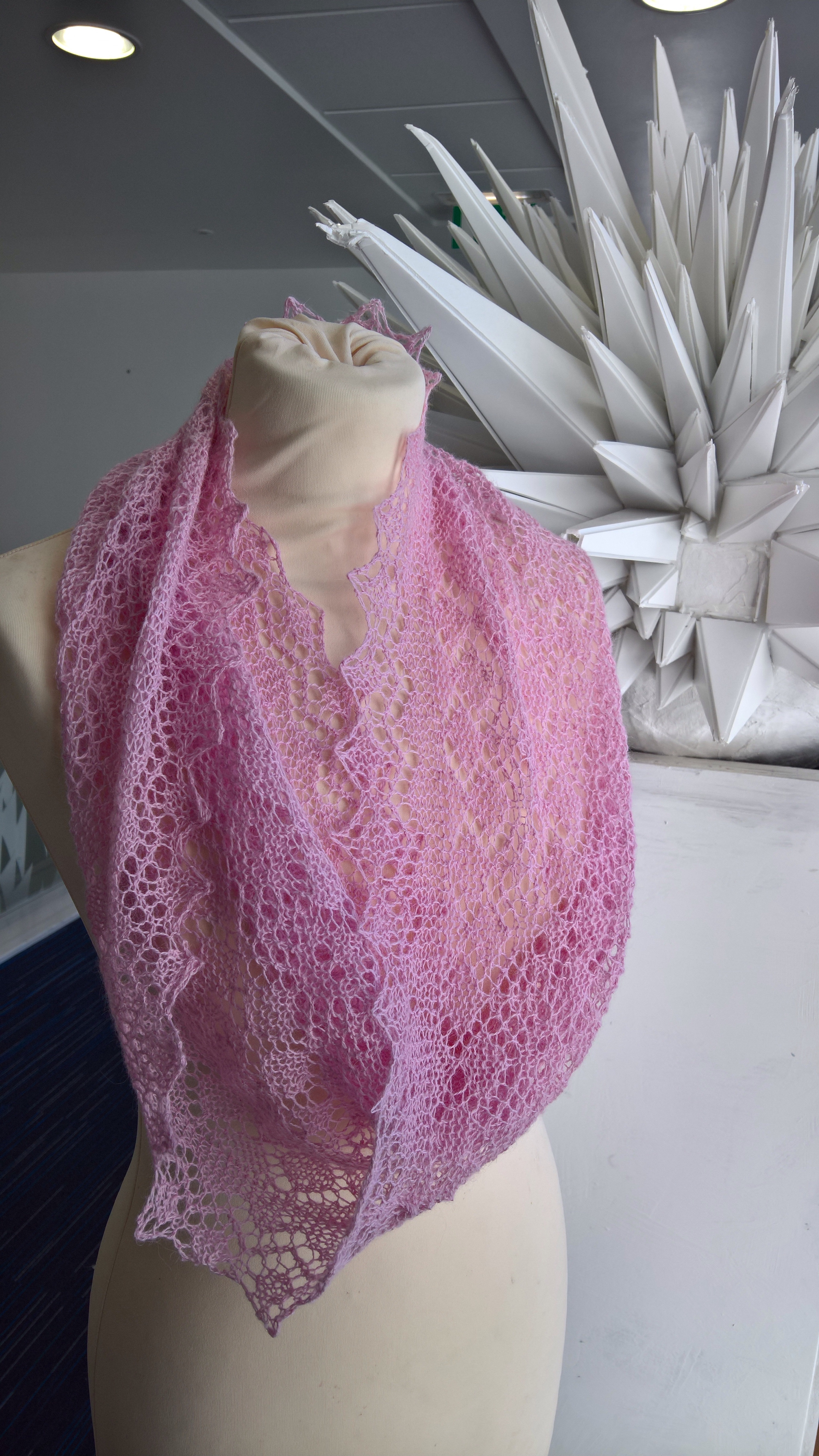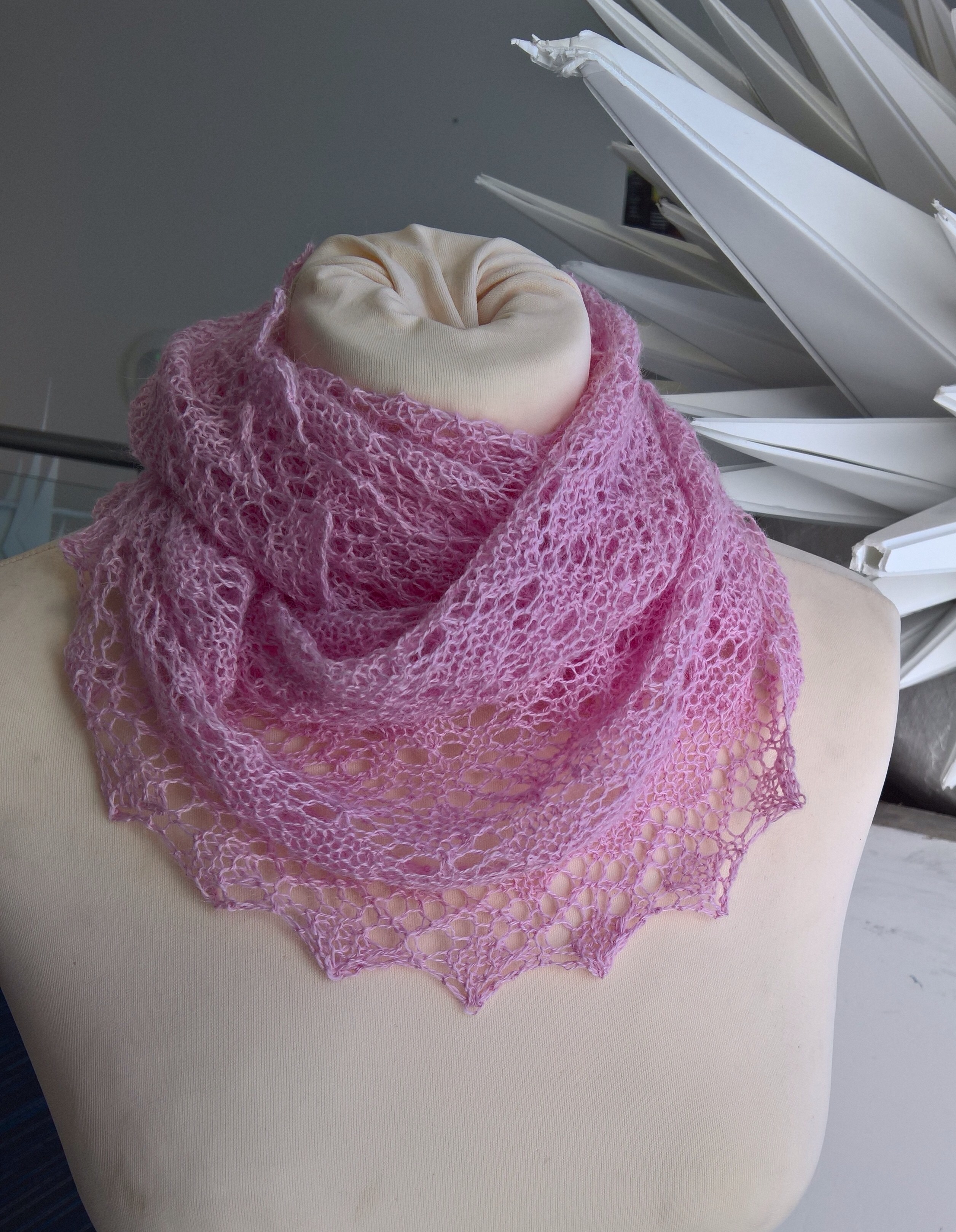 Samphrey Cowl. A whispy little number in Rowan Fine Lace.