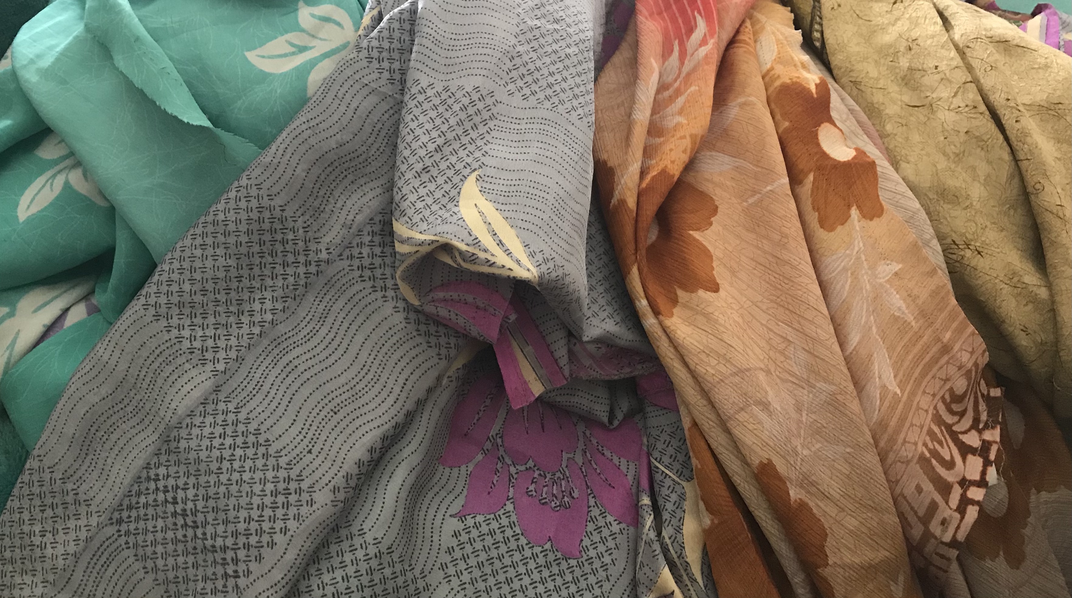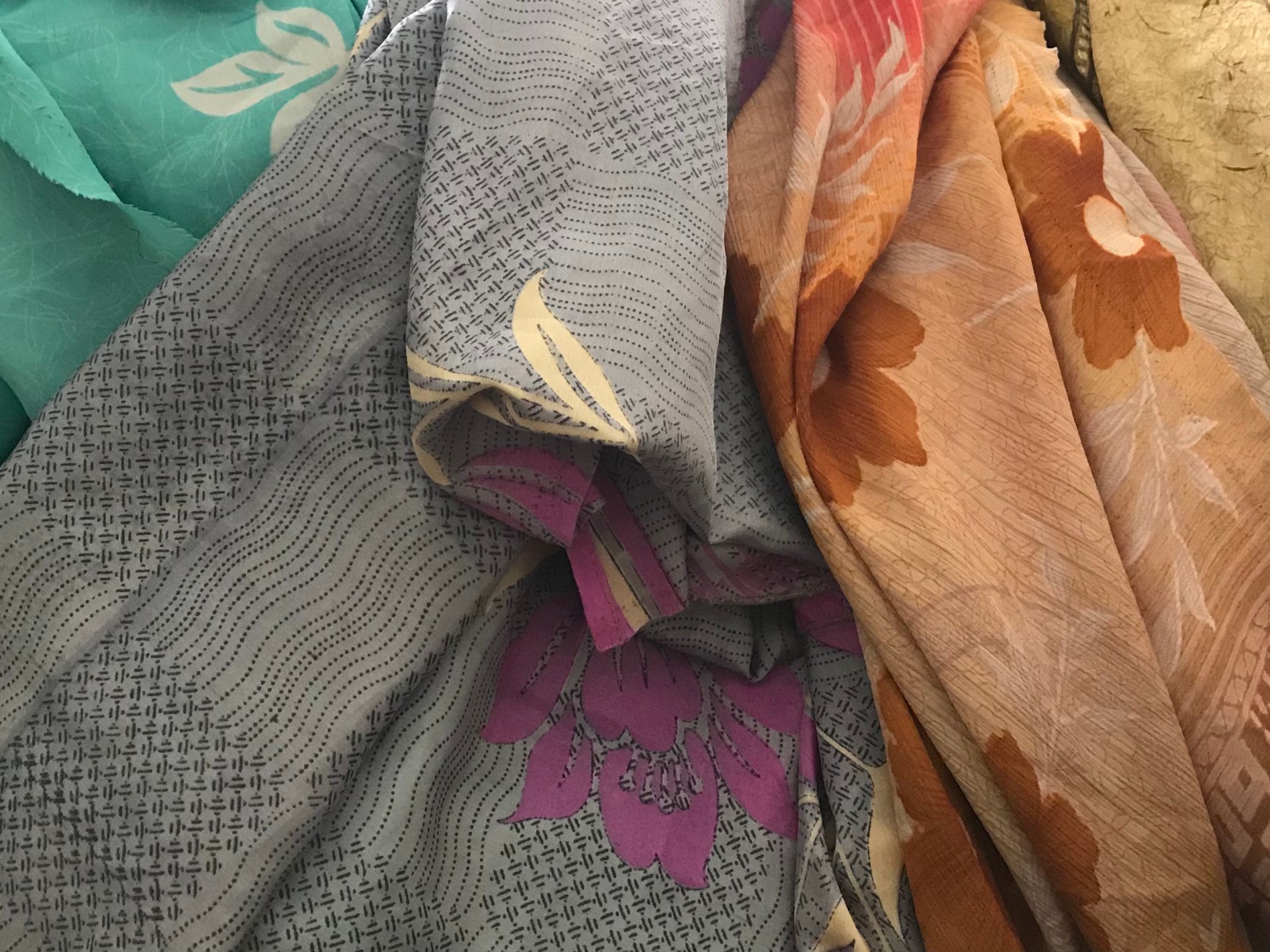 A couple of hours later I had a wonderful pile of slippery silky materials – gulp!